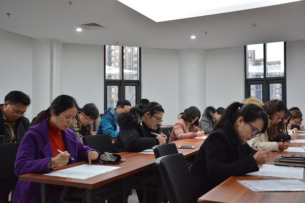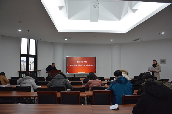 在龙子湖校区第一实验楼530会议室举行了党支部书记培训班结业考试。全体党支部书记参加了考试。