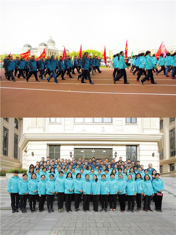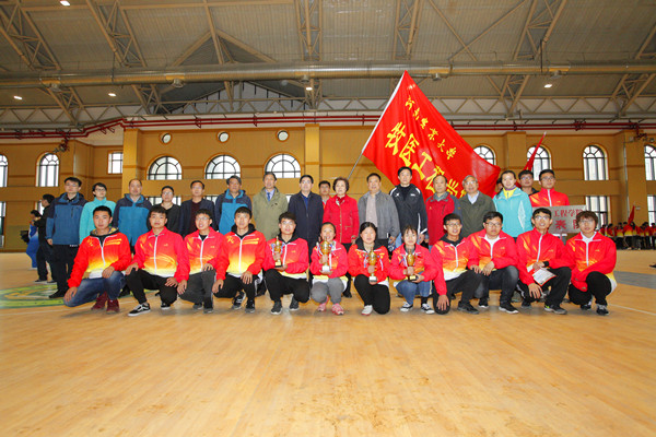 副校长柳娜、学校相关部门负责人和运动员合影留念