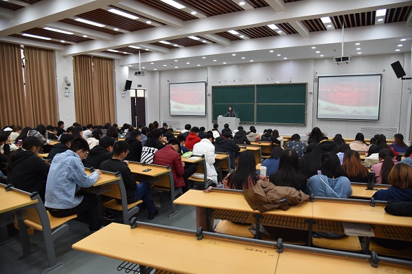 11月19日下午,工口漫画 在繁塔楼大教室八举行了宣传贯彻党的十九届四中全会精神专题讲座,院党委副书记牛娟担任主讲,全体2019级研究生参加会议。