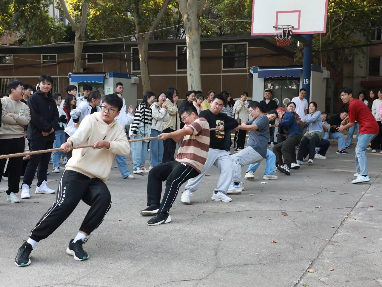 为进一步展现大学生积极向上的精神风貌,增强团结合作精神,提高新生的融入感和校园归属感,10月14日上午,工口漫画 于文化路校区东北角篮球场举办2023级“迎新杯”新生拔河比赛,辅导员冯杰、全体助理班主任和23级全体学生参加比赛。