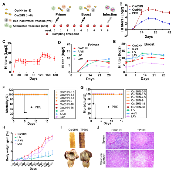 图2、Osr2HN完全保护鸡免受病毒攻击