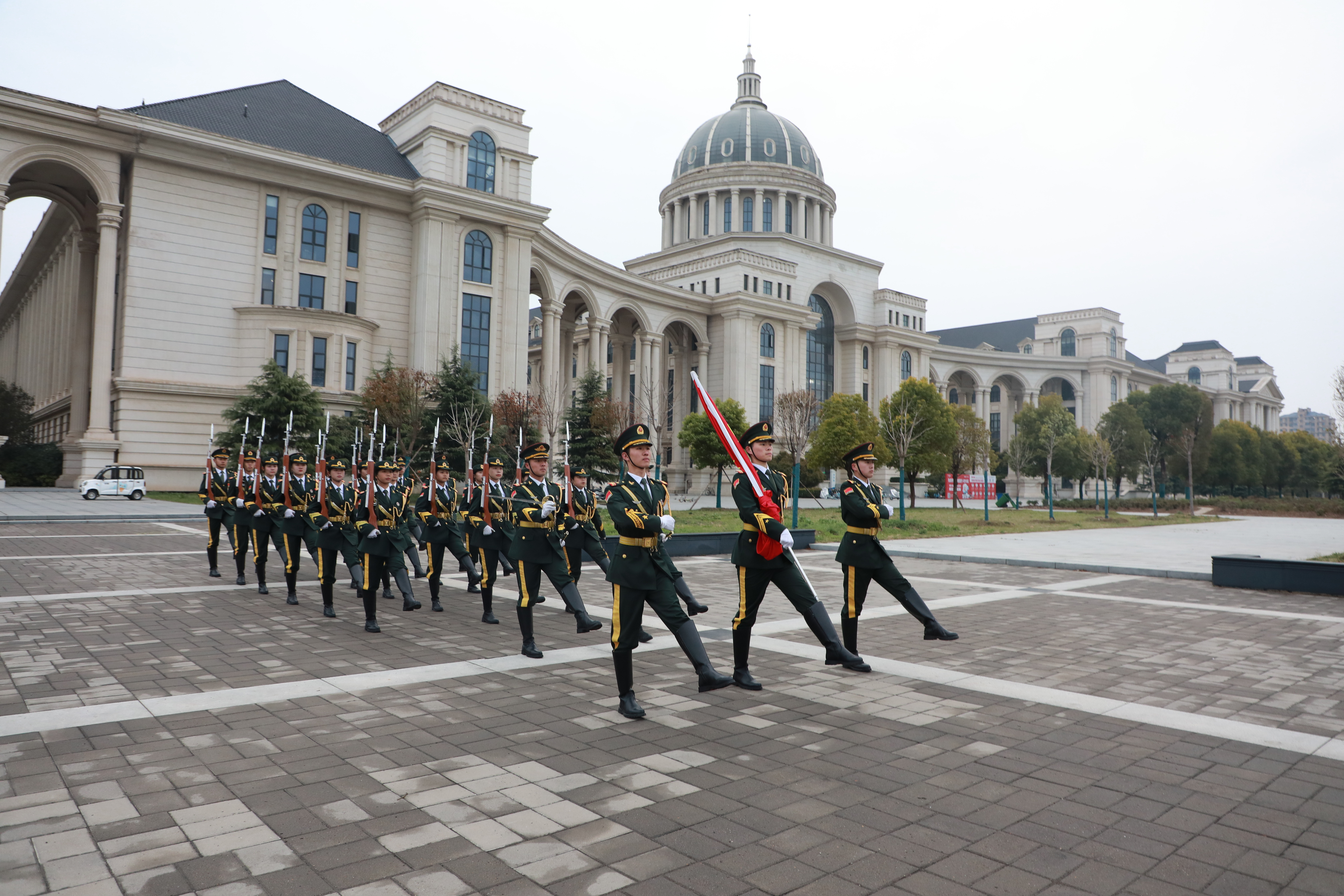 迎着第一缕朝阳,升旗仪式正式开始。国旗护卫队的队员们英姿飒爽,目光坚毅、步履矫健、整齐划一,用刚劲有力的步伐护送五星红旗至升旗台前,伴随着《义勇军进行曲》,全体师生带着深情和敬意面向国旗行注目礼,五星红旗冉冉升起,随风飘扬。