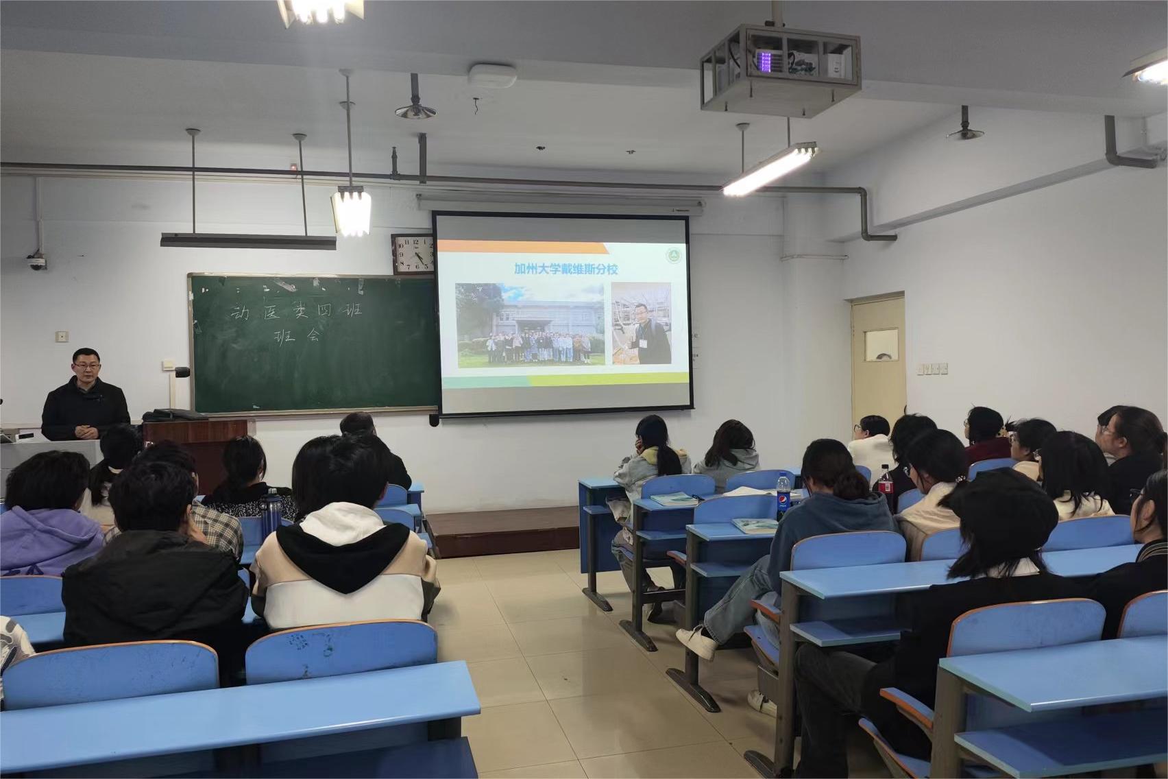为拓宽学生的国际化视野,增强学生的学术科研水平,大力培养国际化人才,3月11日-22日,工口漫画 23级各班级陆续开展加州大学戴维斯分校(UCD)研学经验交流分享主题班会,各班班会邀请了范明夏、朱玉涛、康云哲、李阳、刘一和李笑然六位同学分享寒假研学经历,班会由各班班主任主持。