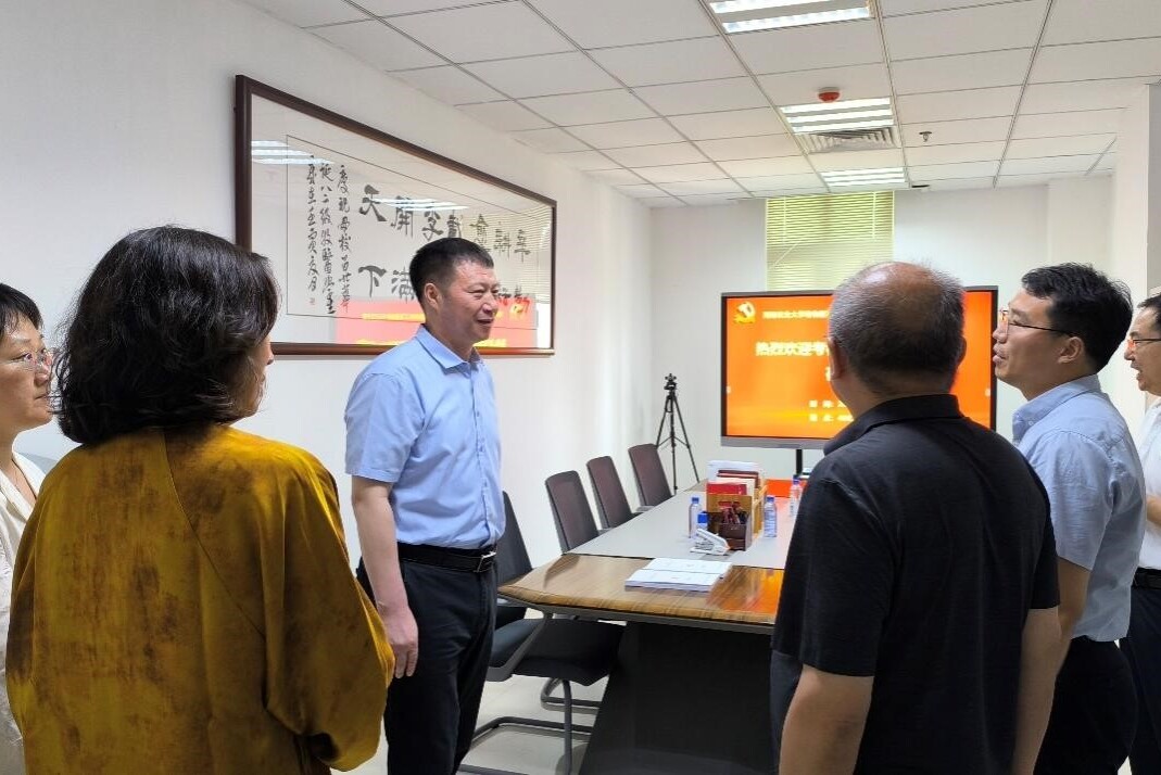 实地走访考察“工作室”建设情况,对支部主阵地进行了考察,深入了解工作室党建工作开展情况。支部书记李永涛从教工党支部的发展历程和基本情况、体制机制创建、党员队伍建设、特色品牌打造、典型示范引领和党建成果展示等方面向专家组一行进行汇报。