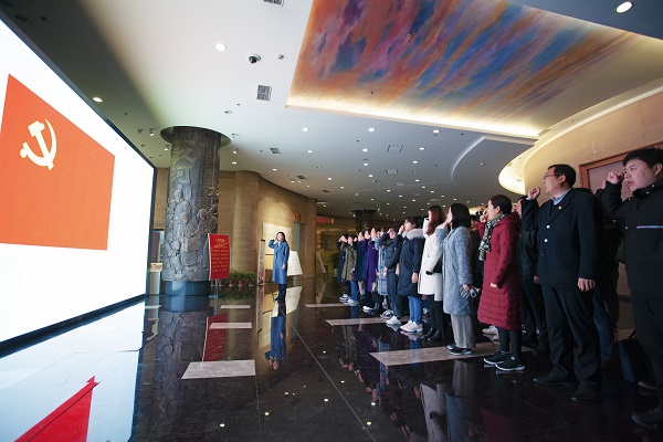 参观之前,全体党员在党旗前庄严宣誓,重温入党誓词,观看了“不忘初心、牢记使命”主题教育宣传片。随后,在现场讲解人员的带领下,参观了载梦启航、寻梦浴血、为梦奠基、追梦扬帆、筑梦新时代五个篇章为主要内容的主题教育展。通过一张张感人的历史照片、一幅幅激烈的战斗场景、一件件珍贵的革命文物,各位党员回顾了党的光辉历史和郑州的发展历程。最后,大家自行参观了土地革命战争厅、解放战争厅等9个展厅,吉鸿昌、杨靖宇、吴焕先、叶成焕、彭雪枫、焦裕禄、任长霞等著名英模人物可歌可泣的感人事迹,令人肃然起敬。