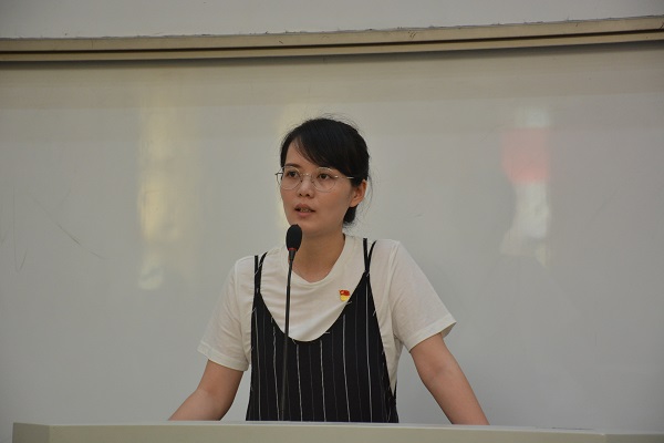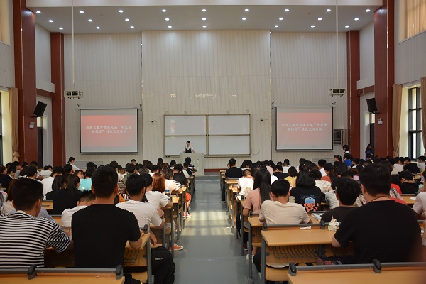 于繁塔楼CD连廊一楼大教室五举行了第九届“学先进 做模范”特色党日活动。院党委组织员来卓出席活动,2015级优秀党员毕业生张永毅、高源、朱晓宁、郑亚婷、楚云鹏与200余位2018级学生代表共同回望大学生活,交流成长心得。活动由来卓主持。