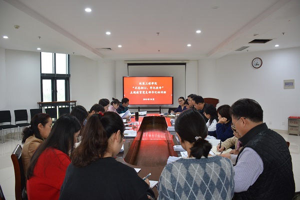 “不忘初心、牢记使命”主题教育党支部书记培训班在龙子湖校区第一实验楼430会议室开班,学院党委副书记牛娟和全体党支部书记进行了首场集中学习。