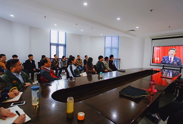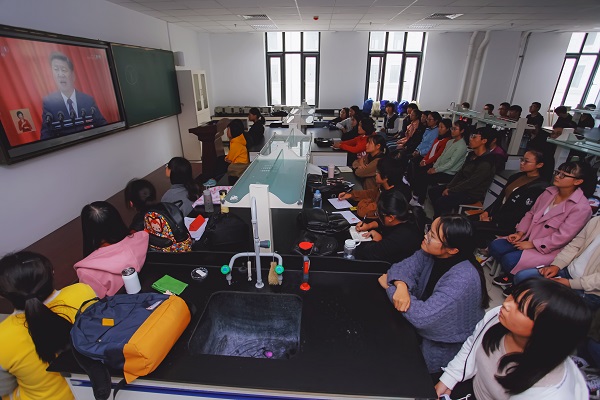 师生代表观看十九大盛况