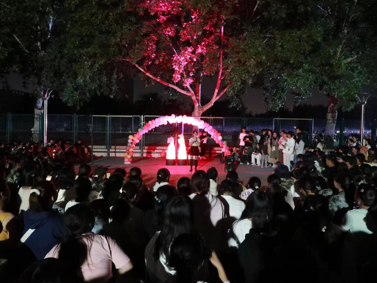 于文化路校区体育馆东侧举办“燃青春 向未来”新生军营篝火晚会,团委老师冯杰出席晚会,23级全体新生参加晚会。