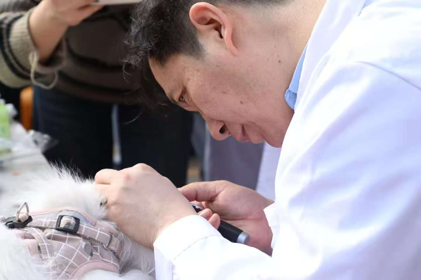 在龙子湖校区家属院广场开展关爱动物健康,义诊“医”路同行--宠物义诊活动。临床兽医系党支部各位老师现场为小动物进行诊疗,院团委全体老师出席此次活动,临床兽医系研究生们及小动物协会成员参与此次活动。