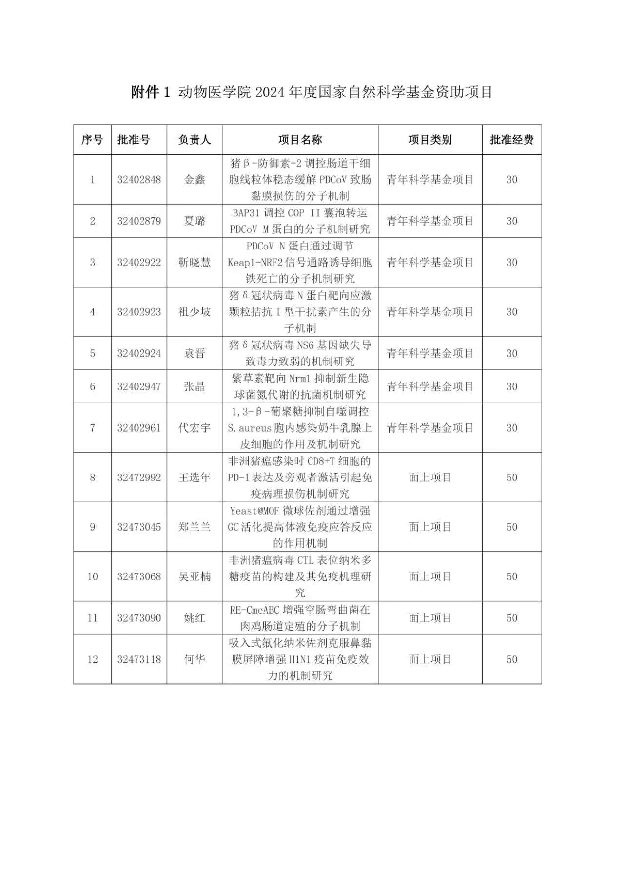 召开2024年度国家自然科学基金项目申报工作启动会暨经验交流会。随后,学院从“创新团队、兽医学科、校外专家”等三个层面对基金项目申请书进行了多次精细论证,极大提高了申请书质量。在基金项目提交前,王荣军教授带领金鑫和祖少坡对学院所有基金项目申请书进行了严格的形式审核,为申请书的成功上报把好最后关口,国家基金委形式审查通过率为100%。