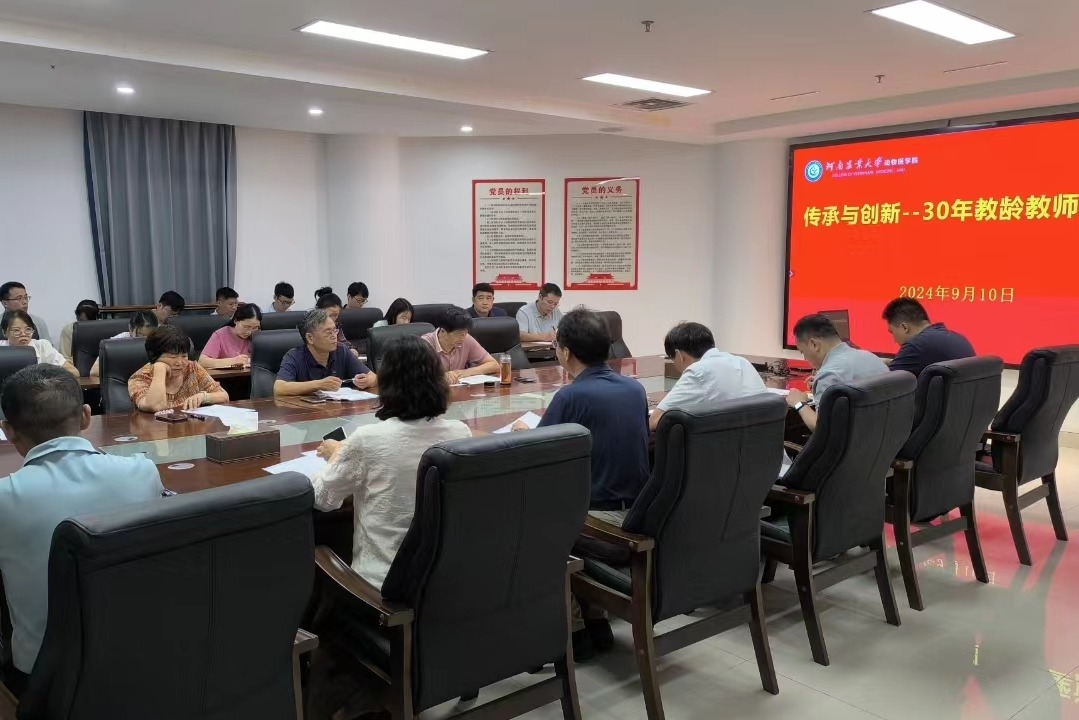 领导班子出席会议,胡功政、刘忠虎、陈丽颖、张龙现四位30年教龄的资深教师和21位青年教师参与此次座谈。