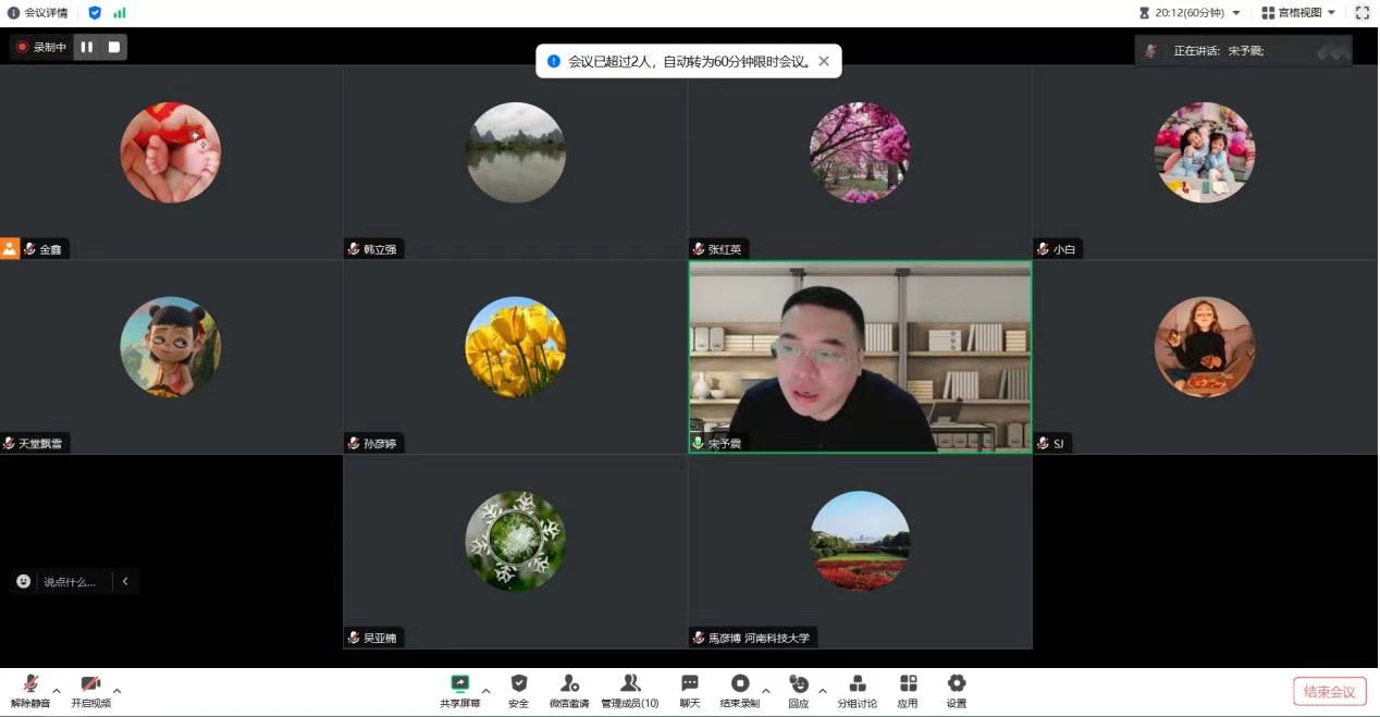 组织线上召开了2024年河南省高等教育教学改革研究与实践项目—《动物医学虚拟仿真实验教学中心校际共享共用机制研究》开题报告论证会,河南牧业经济学院教务处处长宋予震等10余名校内外教师在线上参加了会议。会议由副院长韩立强主持。