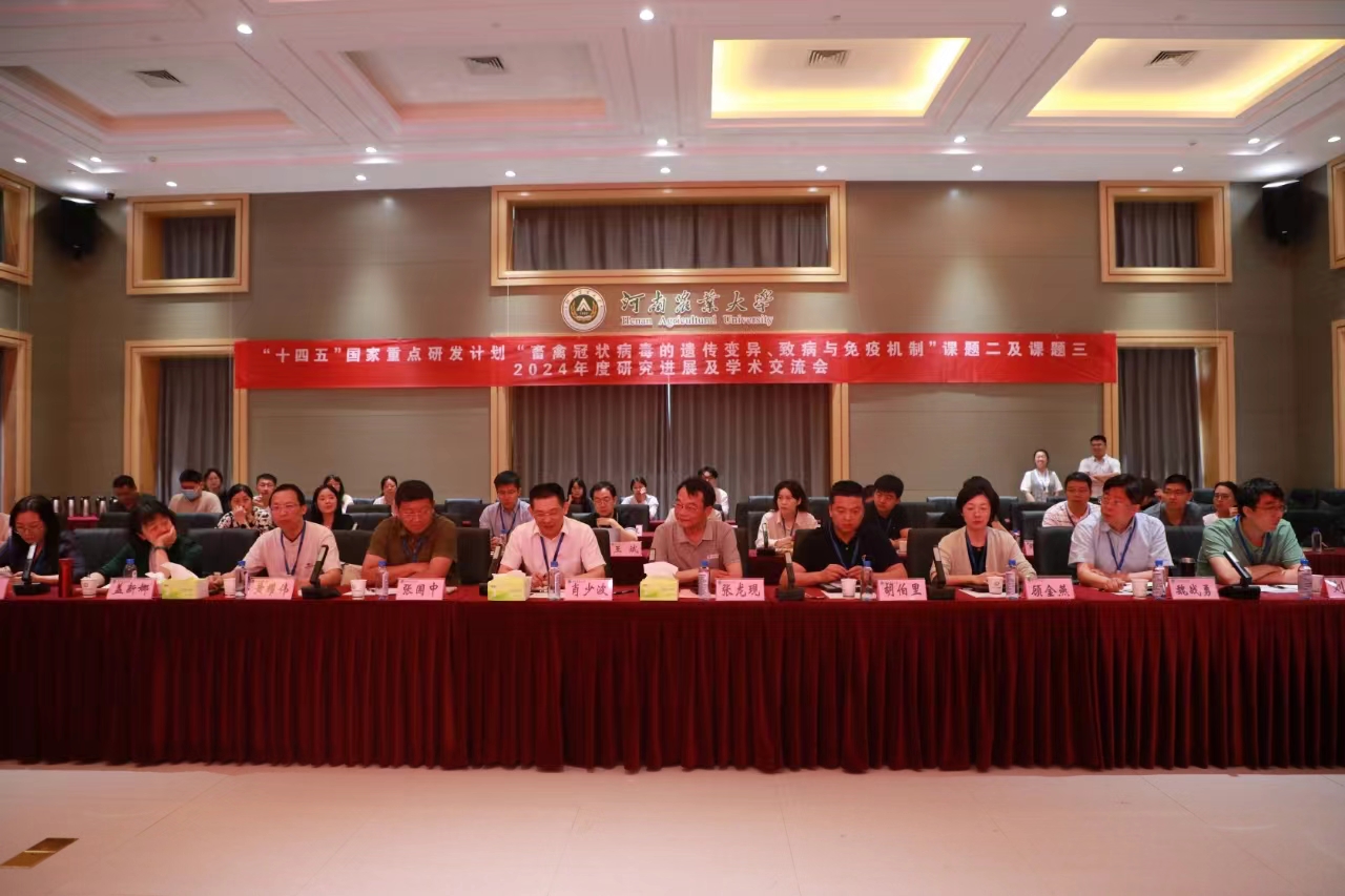 院长张龙现、华中农业大学肖少波教授、许昌校区执行校长魏战勇、中国农业大学张国中教授出席会议。浙江大学胡伯里教授、华南农业大学黄耀伟教授、浙江大学顾金燕研究员、中国农业大学盖新娜教授、华中农业大学位灯国教授、南京农业大学刘星教授、哈尔滨兽医研究所薛美研究员及项目骨干等30余人参加交流会。