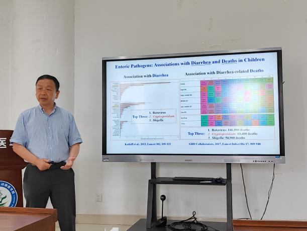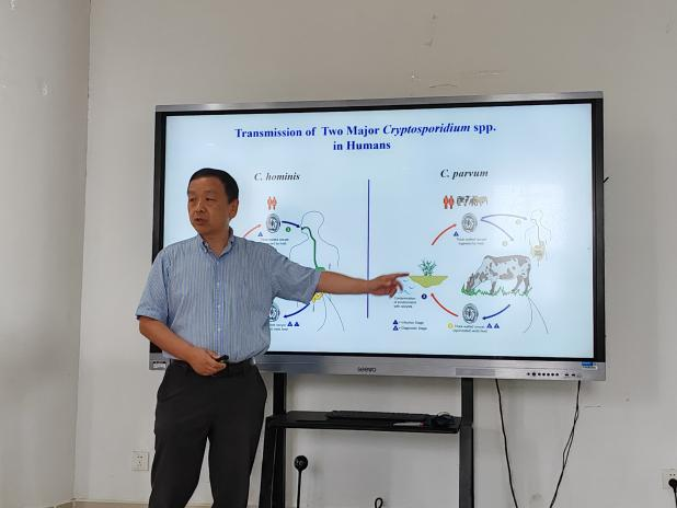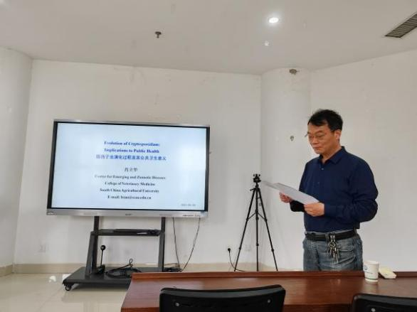 报告会上,肖立华教授首先简单介绍了隐孢子虫的重要性和造成的危害,对隐孢子虫种类和宿主特异性进行了概括,提出研究隐孢子虫人兽共患亚型的演化过程的重要意义;之后肖立华教授详细介绍了通过全基因组测序揭示对两种微小隐孢子虫重要人兽共患亚型的演化过程,解答了有关微小隐孢子虫的3个演化问题,以及使用的方法;最后,肖立华教授强调,集约化家畜养殖有可能促进新型微小隐孢子虫的涌现,主要是本土的亚型和引入的亚型可以发生遗传重组,因此,应该加强相关的生物安全措施,防止新的人兽共患亚型的流入。