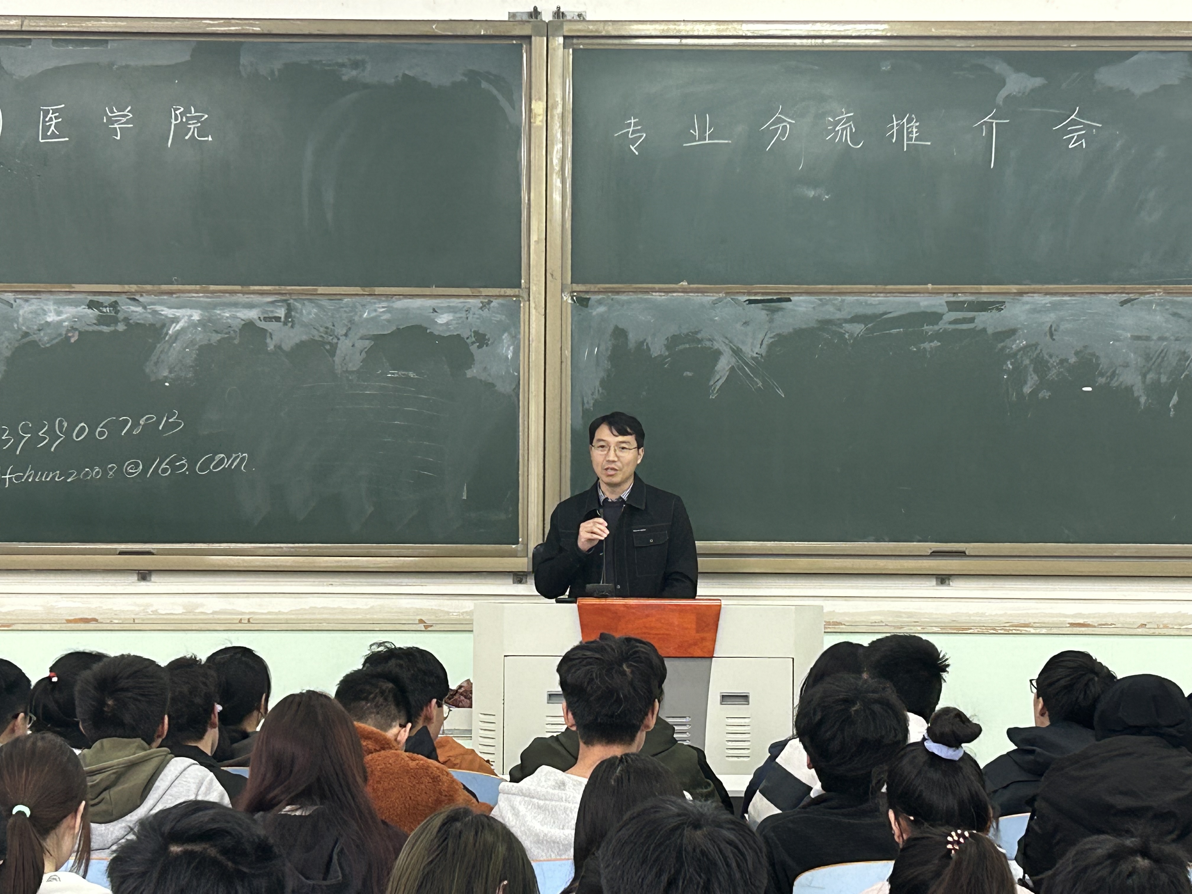 菅复春教授、李永涛副教授出席此次会议并做专业宣讲,2022级动物医学类全体学生参加会议。