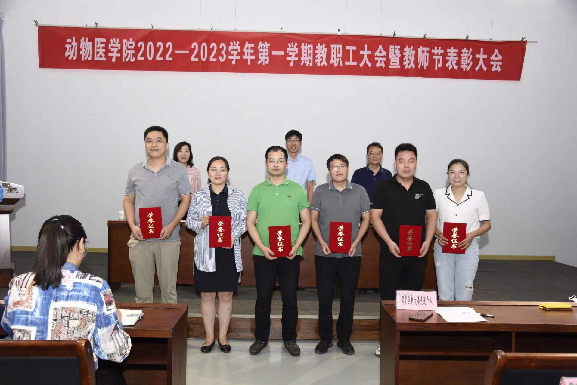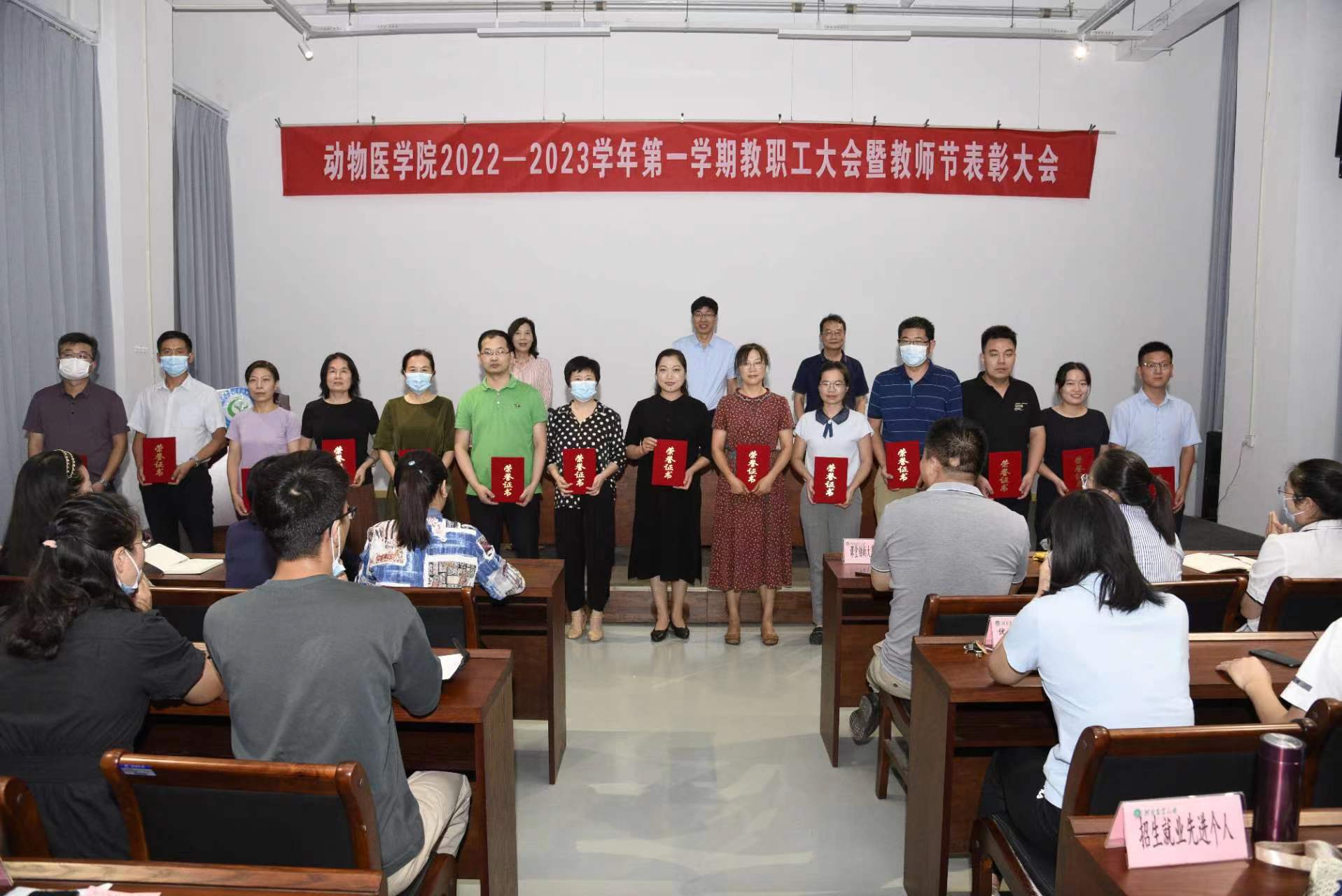 在第一实验楼六楼会议室召开了2022—2023学年第一学期教职工大会暨教师节表彰大会。院党委书记廖仲磊、院长张龙现、副院长杨百丽出席会议。全体教职工参加了会议。会议由杨百丽主持。