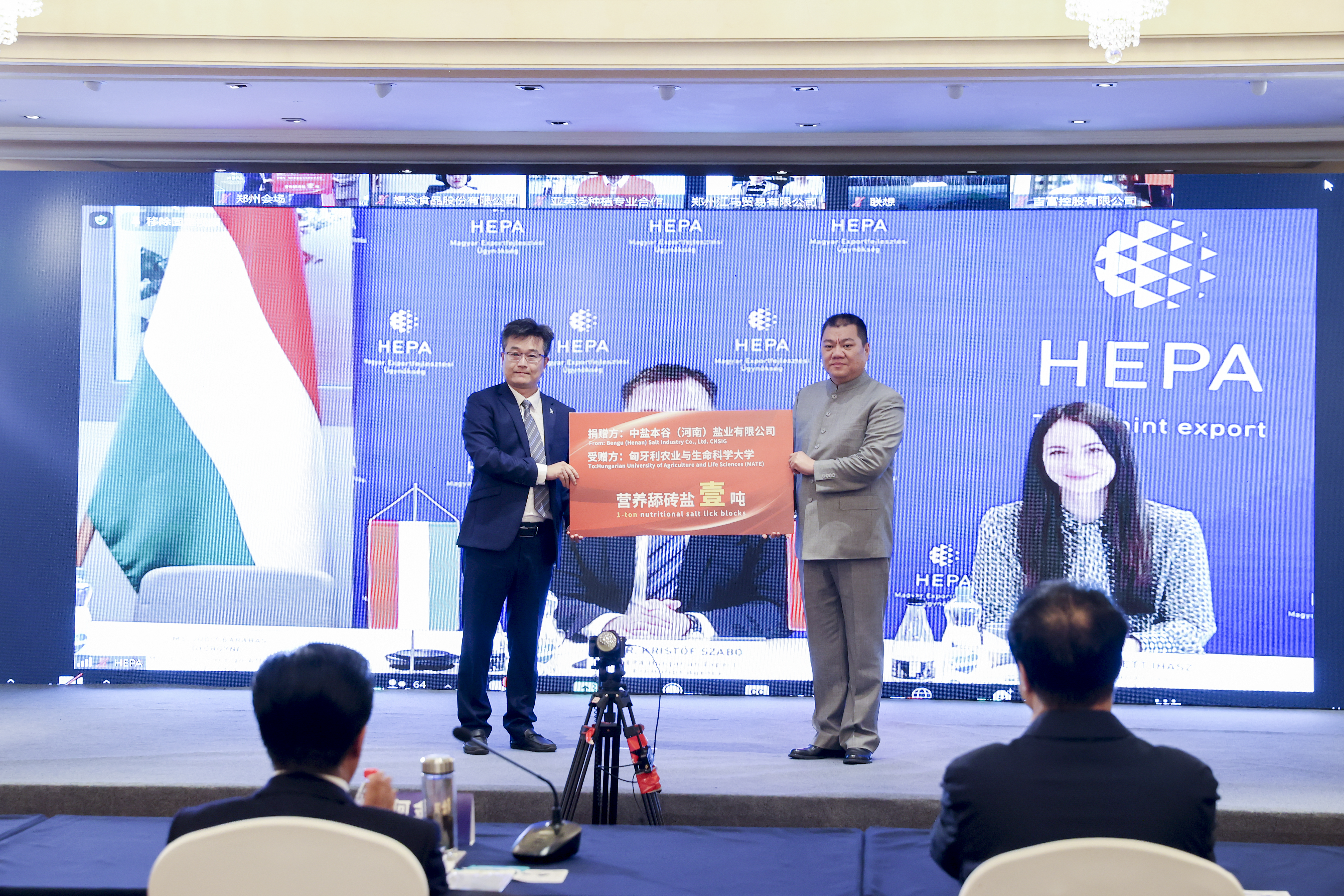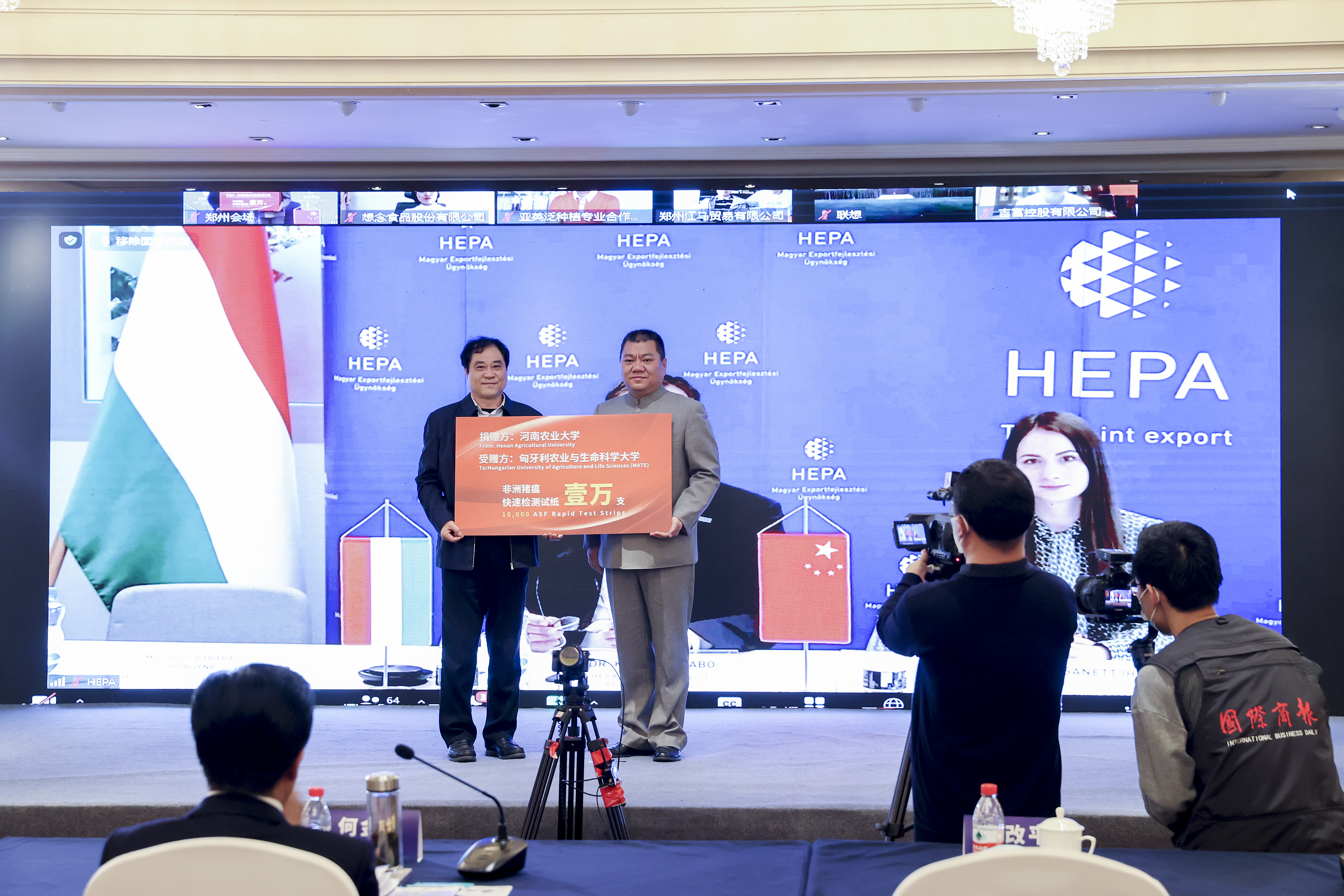 代表参加会议。匈牙利驻华大使馆特命全权大使白思谛(Máté Imre Pesti)、匈牙利外交与对外经济部贸易发展司司长丽塔·塞普·图斯克(Ms. Rita Szép-Tüske)、匈牙利出口促进局局长克里斯托夫·萨博(Dr. Kristóf Szabó)、匈牙利出口促进局国际(中国)业务发展专家珍妮特·伊哈兹(Ms. Zsanett Ihász)及匈牙利出口促进局郑州代表处主任张亚,作为匈牙利方代表参加会议。