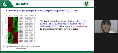 交流会上,张恒老师以《The Function of Shuttle Proteins in Toxoplasma Replication》为主题,系统阐述了泛素-蛋白酶体系统调控弓形虫分裂繁殖进而影响弓形虫致病性的机制,为有效控制弓形虫感染提供了理论依据。陈峥以《Mobilization of tet(X4) by IS1 Family Elements in Porcine Escherichia coli Isolates》为主题作报告,汇报了关于细菌耐药性研究的相关成果。李娟锋以《miRNAs Regulate HCT – 8 Cells Apoptosis Induced by Cryptosporidium Parvum Infection》为主题,阐述了隐孢子虫感染诱导宿主细胞凋亡的机制。