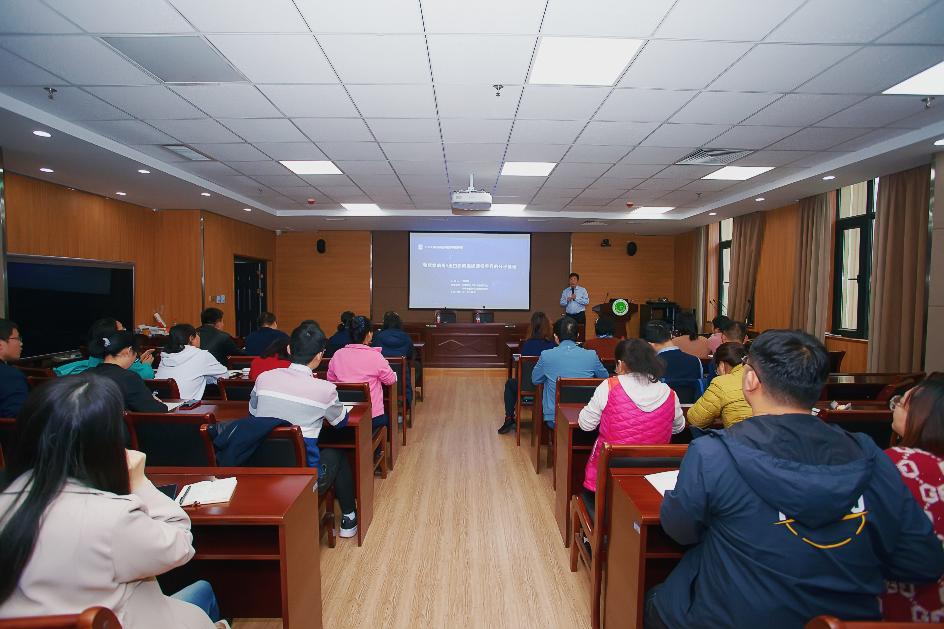 丁铲研究员结合国家自然科学基金的申报工作和流程,以及自身申报经历,剖析了“十四五”期间生命科学部和兽医学优先发展领域,讲解了国家基金资助体系的优化升级,分析了新时期国家自然基金申报所面临的机遇与挑战。同时,他结合自己多年丰富的申报和评审经验,通过实际成功案例,分享了基金申请书的撰写要点,以及常见问题剖析等。随后,魏战勇教授以猪冠状病毒S蛋白影响组织嗜性差异的分子基础项目为例,进行了项目前期工作基础累计,基金写作思路的分享,以及基金项目书的撰写和反复修改提升过程。同时勉励青年教师多合作交流,聚焦研究方向,凝练科学问题。