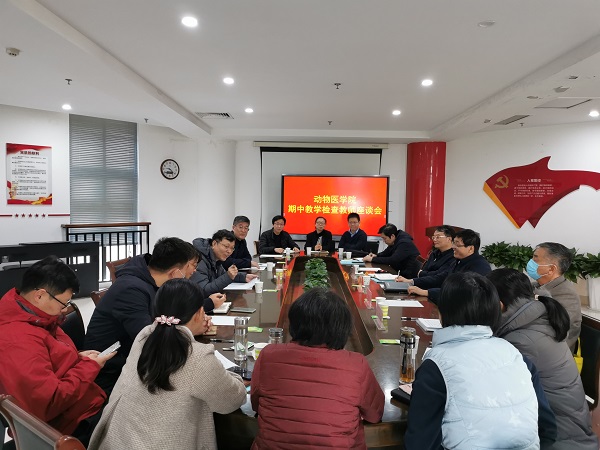 张龙现详细介绍了学院在专业建设、师资力量、动医专业第二学位招生、学生国际交流、专业三级认证等方面的基本情况。并针对下一阶段的教学工作,向检查组和与会教师进行了展望与规划。