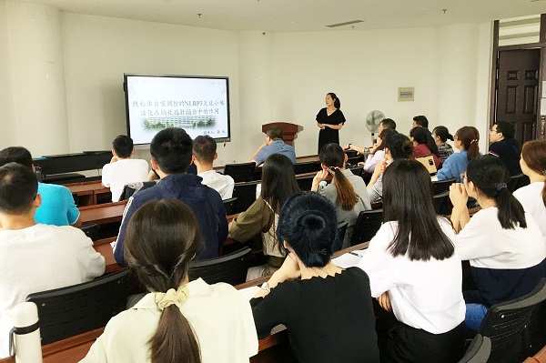 临床兽医系新进青年教师、校青年英才张丛博士在第一实验楼北530会议室为师生带来题为《线粒体自噬调控的NLRP3炎症小体活化在镉致鸡肝损伤中的作用》学术报告,会议由临床兽医系学科带头人王新庄教授主持,学院相关师生参加报告会。
