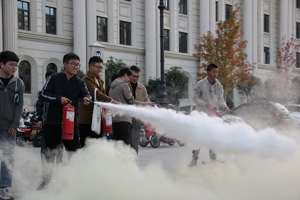 讲座结束后,全体与会人员来到第一实验楼下进行了消防灭火器使用的实地演练。