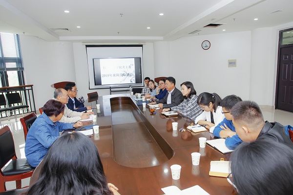 关工委在第一实验楼430会议室召开2019年重阳节座谈会,学院关工委主任牛娟、常务副主任张书松、副主任李奎和委员林东康、王成章以及秘书余果和学院新进青年教师参会。座谈会由牛娟主持。