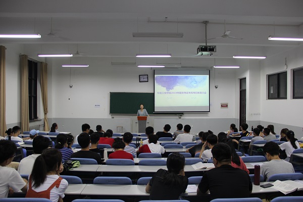 于龙子湖校区繁塔楼C102教室召开本学期期末考试考风考纪教育大会。院团委副书记韩笑主持会议,全体班长支书参加会议。