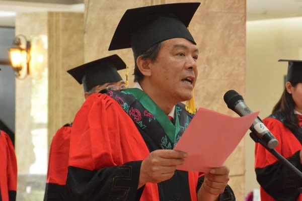 毕业典礼在雄壮的国歌声中拉开序幕。