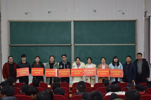 获得“诸美科研创新奖”的学生颁发奖学金。“诸美科研创意奖”由河南诸美种猪育种集团股份有限公司设立,金额1万元,旨在鼓励大学生在学习理论知识的同时积极参与科研项目,知行合一,学以致用。