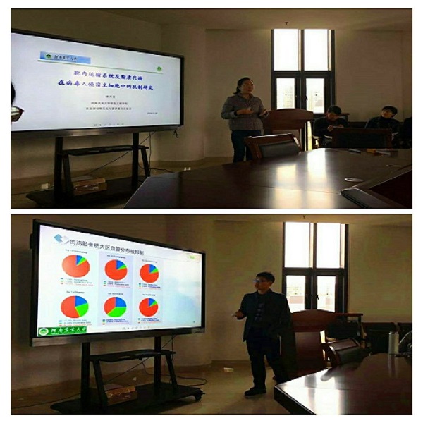 彭旭艳和童超结合自己科研经历分别作了题为《vitamin D 促进脂肪燃烧的分子机理》和《牛乳腺上皮细胞中的lincRNA的鉴定及其功能预测》的学术报告,并与师生进行热烈的交流。