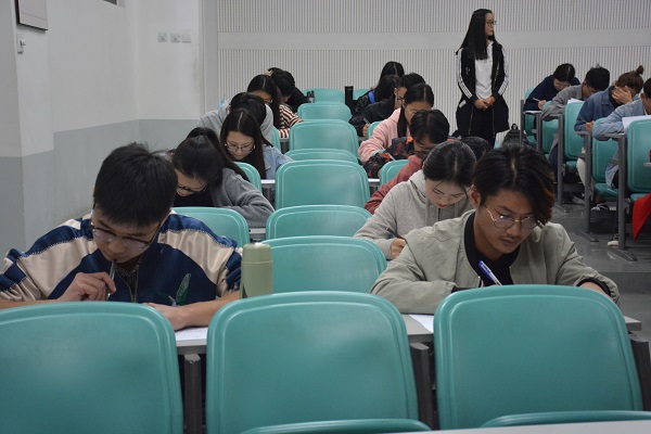 于繁塔楼C302、C304教室举行了2018年拟发展对象党的基本知识理论考试。院党委组织员来卓、院团委副书记韩笑、2018级辅导员陈翔一同监考。学院121名拟发展对象参加了本次考试。
