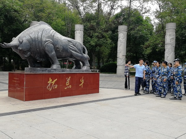 新生在牧医广场参观拓荒牛