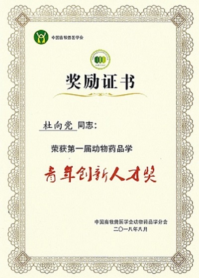 工口漫画 杜向党教授喜获第一届动物药品学“青年创新人才奖”
