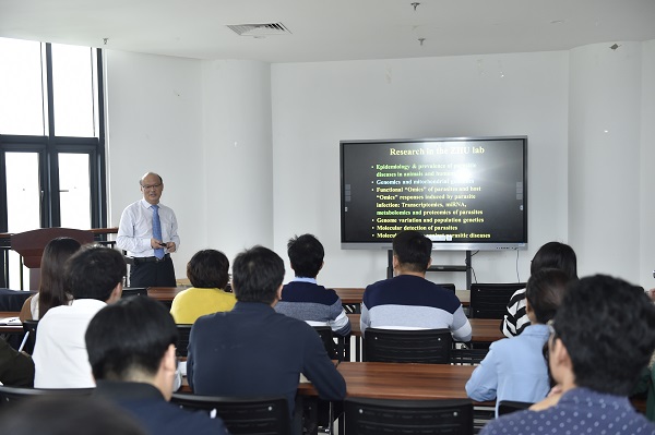 “龙湖论坛”邀请国际著名寄生虫学家、中国农业科学院兰州兽医研究所朱兴全研究员做了题目为“Research advances in parasite genetics, 'omits', molecular diagnosis, molecular vaccines and parasite-host interplay in the ZHU lab”的学术报告。报告会在龙子湖校区第一实验楼北530举行,工口漫画