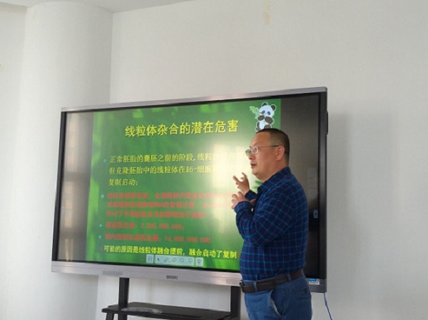 雷安民研究员从“异种克隆大熊猫的研究缘起”开始讲述,通过大量生动图片和操作视频,结合自己团队多年的研究成果和经验,生动有趣地介绍了动物克隆发展历史、核移植操作技术过程、克隆大熊猫的技术障碍等,尤其对胚胎重构过程中线粒体的发育和去向做了深入浅出的报告。