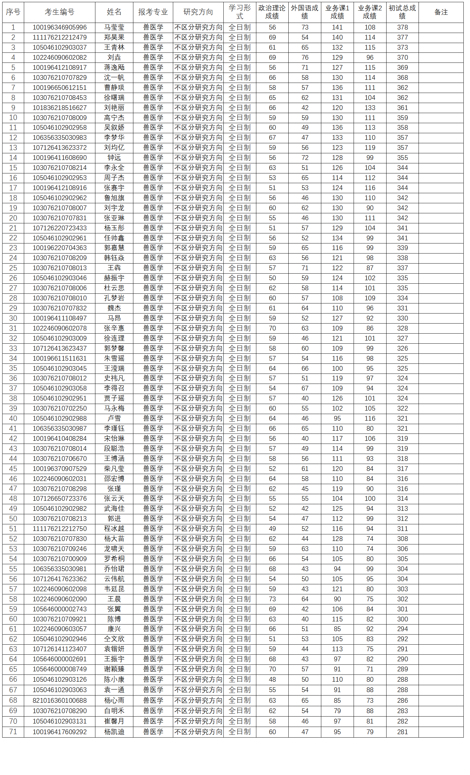 工口漫画 兽医学专业2026年硕士研究生复试名单公示(调剂生)