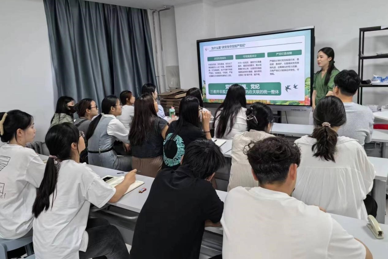 会上,各党支部支部书记以《讲党性、守党规、严党纪》为主题,进行专题党课教育。各支部通过支部书记现场领学、观看视频、交流讨论等形式,集中学习了《条例》有关章节。学习过程中,支部书记详细讲解了党纪的学习目标与内容、指出“讲党性、守党规、严党纪”的内涵与三者间的关系,以及当前存在的问题,并深入剖析了党纪学习的重要性。在学习的同时,要求全体党员做到学纪、知纪、明纪、守纪,把遵规守纪刻印在心,内化为言行准则,进一步强化纪律意识、加强自我约束、提高免疫能力。